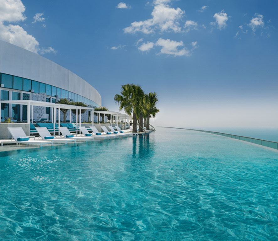 هتل Address Beach Resort با معماری خیرهکنندهاش که دو برج 77 طبقهای را با یک پل آسمانی شگفتانگیز به هم متصل کرده است، یکی از نمادهای لوکس و مدرن دبی به شمار میآید. مشخصهای که این هتل را بهطور ویژه از دیگر هتلها متمایز میکند، استخر بیپایان در فضای باز آن است که بهعنوان بلندترین استخر دنیا در ارتفاع 294 متری، مناظر خارقالعادهای از Bluewaters Island، چرخفلک Ain Dubai، Palm Jumeirah و Dubai Marina را به شما هدیه میدهد. با ورود به این هتل، فضایی پر از نور، طراحی مینیمال و خطوطی الهامگرفته از معماری مدرن شما را در بر میگیرد. استقبال گرم کارکنان هتل و رایحه دلنشین فضای لابی، حسی از آرامش و شکوه را از همان ابتدا به شما القا میکند. هتل زیبای Address Beach Resort با ارائه مجموعهای از رستورانها و کافههای ممتاز، شما را به سفری در میان طعمهای جهانی دعوت میکند. از غذاهای محلی و دریایی تا منوهای بینالمللی و نوشیدنیهای خلاقانه، هر وعده غذایی در اینجا به یک تجربهای خاص تبدیل میشود. رستورانها با تراسهای باز و چشماندازهای دیدنی، جایی مناسب برای لذت بردن از غذا در کنار عزیزانتان هستند. برای دوستداران فعالیتهای ورزشی، هتل امکاناتی همچون باشگاه ورزشی مجهز و سه استخر روباز با مناظر بیپایان از دریا و شهر ارائه میدهد. در کنار این امکانات، اتاقهای خانوادگی، سرویس اتاق 24 ساعته، خدمات ارزی و دسترسی مستقیم به ساحل از دیگر ویژگیهای این هتل هستند. هتل Address Beach Resort با تلفیق معماری برجسته، امکانات بینظیر و خدماتی فراتر از انتظار، موفق شده است در سایت Booking.com نمره بالای 9.3 را کسب کند و به انتخابی محبوب برای مسافران لوکسپسند تبدیل شود.
