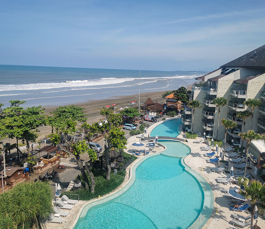 هتل Double – Six, Luxury Hotel – Seminyak  در یکی از پرجنب‌وجوش‌ترین مناطق بالی، در ساحل Double Six  در سمینیاک واقع شده است. این منطقه به سبک زندگی لوکس، غروب‌های دیدنی و سواحل ماسه‌ای طلایی خود شهرت دارد. هتل درست در کنار اقیانوس هند قرار گرفته و با چشم‌اندازهای بی‌نظیر و فضای آرامش‌بخش، مقصدی عالی برای عاشقان دریا و غروب‌های رمانتیک است. سمینیاک، به‌عنوان یکی از شیک‌ترین مناطق بالی، پر از بوتیک‌های مدرن، کافه‌های محبوب و گالری‌های هنری است. مهمانان می‌توانند با چند دقیقه پیاده‌روی به خیابان Jalan Kayu Aya  که با نام “Eat Street” نیز شناخته می‌شود برسند و در میان رستوران‌های سطح بالا، کافه‌های جذاب و فروشگاه‌های برندهای محلی و بین‌المللی گردش کنند. Beachwalk Shopping Center  یک مرکز خرید لوکس در ساحل کوتا که با فروشگاه‌های برندهای معروف، فودکورت‌های متنوع و فضای باز دلباز خود شناخته می‌شود. La Plancha   یک بار ساحلی رنگارنگ و محبوب که شب‌ها با نورپردازی زیبا و موسیقی زنده، حال و هوای ویژه‌ای دارد. نزدیک‌ترین فرودگاه به هتل، فرودگاه بین‌المللی نگورا رای Ngurah Rai International Airport است که در حدود ۹ کیلومتری هتل قرار دارد. مسیر فرودگاه تا هتل با خودرو معمولاً حدود ۲۰ تا ۳۰ دقیقه طول می‌کشد که بسته به ترافیک مسیر ممکن است کمی متغیر باشد.
