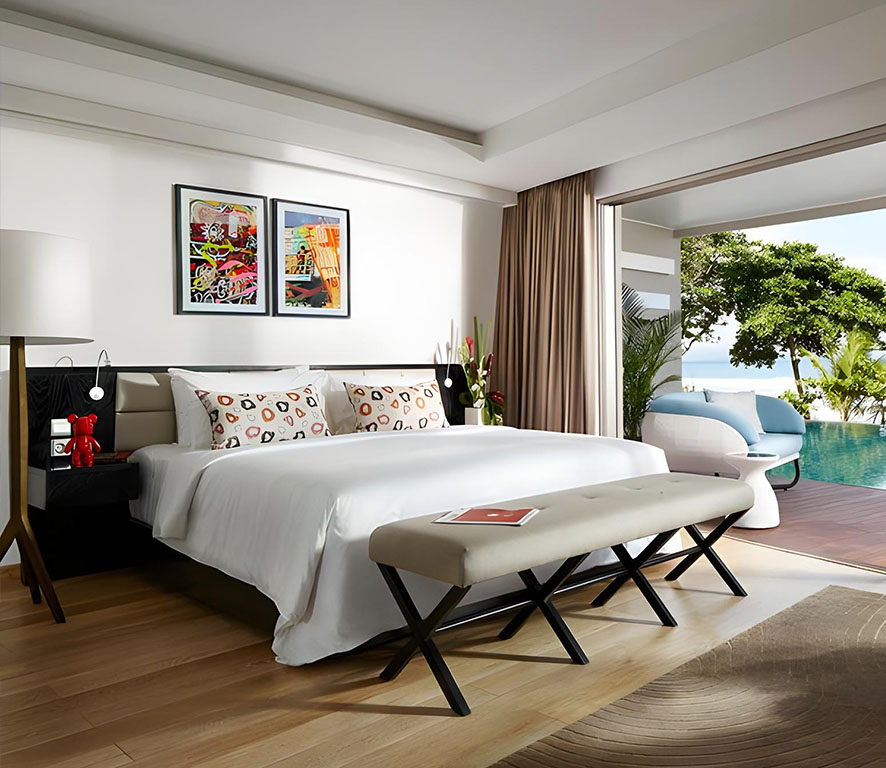 اتاق‌های هتل با مبلمانی شیک و مدرن تزئین شده‌اند و فضایی دلباز را برای استراحت و لذت از مناظر خیره‌کننده‌ی اقیانوس هند فراهم می‌کنند. بالکن‌های اختصاصی، لحظاتی بی‌نظیر از طلوع و غروب خورشید را در اختیار مهمانان قرار می‌دهند، در حالی که وان‌های بزرگ و دوش‌های مجزا در حمام‌های مجلل، فرصتی برای آرامش و تجدید انرژی را مهیا می‌سازند. Leisure Suite  با ۸۰ مترمربع فضا و یک تخت کینگ‌سایز، انتخابی عالی برای مهمانانی است که به دنبال ترکیبی از راحتی و سبک هستند. این سوئیت بدون منظره اقیانوس طراحی شده اما همچنان با فضایی دلباز و امکاناتی کم‌نظیر، اقامتی دلپذیر را تضمین می‌کند. این سوئیت برای زوج‌هایی که به دنبال آرامش و راحتی هستند یا مسافرانی که قصد اقامت طولانی دارند، گزینه‌ای ایده‌آل محسوب می‌شود. برای آن‌هایی که دسترسی مستقیم به استخر را ترجیح می‌دهند، Premium Suite Pool Access  با ۱۰۰ مترمربع فضا، انتخابی ایده‌آل است. این سوئیت در طبقه همکف واقع شده و مهمانان می‌توانند مستقیماً از اتاق خود به استخر ۱۲۰ متری هتل دسترسی داشته باشند. فضایی که برای مسافران شیک و خوش‌سلیقه طراحی شده، با تخت‌های King Koil مخصوص هتل، خوابی آرام و دلنشین را تضمین می‌کند. این اتاق برای کسانی که می‌خواهند روز خود را با شنا آغاز کنند یا به دنبال ترکیبی از لوکس بودن و دسترسی راحت هستند، بسیار مناسب است. اگر به دنبال فضایی بزرگ‌تر برای اقامت خانوادگی یا گروهی هستید، Two Bedroom Deluxe Suite Ocean View  با ۱۶۰ مترمربع فضا و دو اتاق خواب، انتخابی عالی خواهد بود. دو اتاق خواب مستقل، هرکدام با حمام اختصاصی، شرایط ایده‌آلی را برای اقامت راحت و خصوصی فراهم می‌کنند. بالکن اختصاصی با فضای نشیمن، امکان لذت بردن از نسیم تازه و چشم‌انداز دل‌انگیز اقیانوس را فراهم کرده است. اما اگر به دنبال تجربه‌ای کاملاً خاص و منحصربه‌فرد هستید، Penthouse Ocean View  با ۳۰۰ مترمربع فضا، دو اتاق خواب مجلل و دو حمام، گزینه‌ای بی‌نظیر است. طراحی مدرن و دو طبقه بودن این پنت‌هاوس، اقامتی فراتر از حد تصور را برای مهمانان فراهم می‌کند. بالکن اختصاصی در اتاق مستر، فضایی برای استراحت و لذت بردن از منظره وسیع اقیانوس ایجاد کرده است، در حالی که اتاق مهمان با دو تخت سینگل بزرگ، راحتی و انعطاف‌پذیری بیشتری را ارائه می‌دهد. اما اوج تجربه‌ی این پنت‌هاوس در تراس اختصاصی طبقه دوم رقم می‌خورد، جایی که یک جکوزی شخصی انتظار شما را می‌کشد. تصور کنید در حالی که در میان حباب‌های آب گرم غوطه‌ور هستید، به تماشای منظره‌ی بی‌پایان اقیانوس بنشینید.