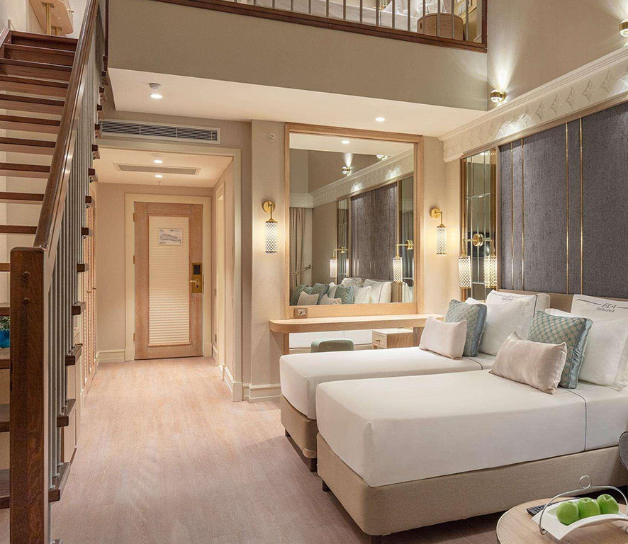 در Ela Excellence Resort Belek، هر اتاق و سوئیت با طراحی منحصربه‌فرد، فضایی دلپذیر و امکاناتی مدرن، تجربه‌ای خاص را برای مهمانان رقم می‌زند. از اتاق‌های خانوادگی دنج گرفته تا ویلاهای مجلل، تنوع گزینه‌ها امکان انتخابی مناسب برای هر سلیقه و نیاز را فراهم می‌کند. Family Duplex Room Forest/Sea View  با ۶۰ مترمربع مساحت و ظرفیت ۴ بزرگسال و ۱ کودک، فضای ایده‌آلی برای خانواده‌هاست که به دنبال ترکیب راحتی و امنیت هستند. این اتاق‌های دوطبقه، محیطی دنج و خانوادگی را فراهم کرده و منظره‌ای آرامش‌بخش از دریا یا جنگل را به نمایش می‌گذارند. طراحی مدرن و فضای گرم این اتاق، آن را به گزینه‌ای مناسب برای والدینی تبدیل می‌کند که می‌خواهند در کنار کودکان خود اقامتی آسوده را تجربه کنند. Premier Roof Top Suite  با ۱۹۶ مترمربع مساحت و ظرفیت ۲ بزرگسال و ۱ کودک یا ۳ بزرگسال، یک انتخاب فوق‌العاده برای کسانی است که به دنبال فضایی باز، چشم‌اندازی خیره‌کننده و اقامتی سرشار از آرامش هستند. این سوئیت دارای بالکن‌های وسیع و اتاق‌هایی با طراحی خاص است که امکان لذت بردن از لحظات ناب را در محیطی روشن و دلباز فراهم می‌کند. اگر به دنبال ترکیبی از راحتی، زیبایی و فضایی مجلل برای استراحت هستید، این سوئیت انتخابی عالی خواهد بود. Grand Roof Top Suite  با طراحی دوبلکس، معماری منحصربه‌فرد و مساحتی بالغ بر ۲۳۵ مترمربع، برای ۴ بزرگسال و ۱ کودک یا ۵ بزرگسال طراحی شده است. فضای وسیع، دو طبقه‌ی مجزا و دکوراسیونی مدرن، این سوئیت را به گزینه‌ای لوکس برای خانواده‌های پرجمعیت یا گروه‌های دوستانه تبدیل می‌کند. طراحی متنوع در هر طبقه، احساس حضور در دو فضای مجزا اما هماهنگ را ایجاد کرده و امکان استراحت و تفریح در محیطی جذاب را فراهم می‌آورد. King Suite  با ۳۷۵ مترمربع مساحت و ظرفیت ۴ بزرگسال و ۱ کودک یا ۵ بزرگسال، اقامتی مجلل و باشکوه را به مهمانان هدیه می‌دهد. هر روز با منظره‌ای نفس‌گیر از دریای مدیترانه بیدار شوید و از فضای داخلی لوکس و مبلمان زیبا لذت ببرید. این سوئیت برای کسانی که به دنبال سطح بالایی از راحتی، خدمات اختصاصی و اقامتی فراموش‌نشدنی هستند، بهترین گزینه است. و در نهایت، Villa Sultan Palace  با ۷۹۴ مترمربع مساحت و ظرفیت ۱۰ بزرگسال و ۲ تخت اضافه، تعریف واقعی از تجمل و راحتی است. این ویلا، با طراحی مجلل و امکانات اختصاصی، اقامتی بی‌نظیر را برای خانواده‌های بزرگ یا گروه‌هایی که به دنبال فضایی کاملاً خصوصی هستند، فراهم می‌کند. هر لحظه از اقامت در این ویلا، تجربه‌ای از آرامش، شکوه و خدماتی در سطح برترین استانداردهای جهانی خواهد بود.