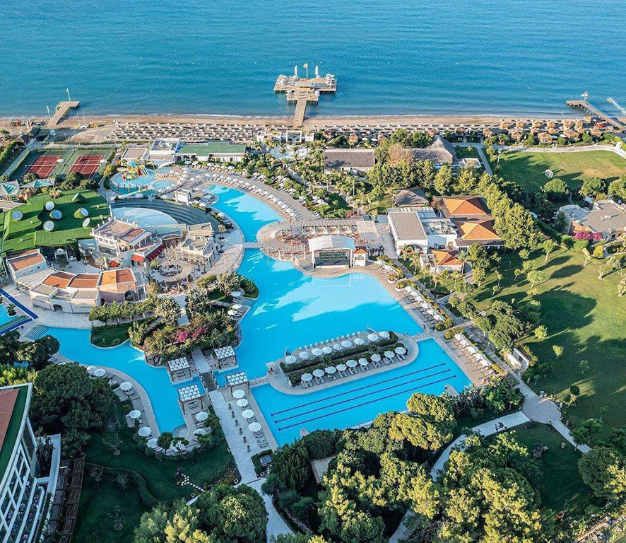 Ela Excellence Resort Belek  در یکی از بهترین مناطق گردشگری Belek  واقع شده است، جایی که طبیعت سرسبز، سواحل ماسه‌ای درخشان و جاذبه‌های تفریحی و تاریخی در کنار هم، فضایی بی‌نظیر برای یک تعطیلات رویایی فراهم کرده‌اند. این هتل تنها ۱.۲ کیلومتر از مرکز شهر Belek فاصله دارد و در نزدیکی آن می‌توان به جاذبه‌های متنوعی دسترسی داشت. برای علاقه‌مندان به تاریخ و فرهنگ، Aspendos Theatre  که یکی از باشکوه‌ترین آمفی‌تئاترهای روم باستان در ترکیه است، در فاصله ۲۱ کیلومتری از هتل قرار دارد. این سازه با قدمتی بیش از ۲۰۰۰ سال، هنوز هم محل اجرای نمایش‌ها و کنسرت‌های باشکوه است. عاشقان طبیعت می‌توانند از Kurşunlu Waterfall، که در فاصله ۳۵ کیلومتری از هتل قرار دارد، بازدید کنند. این آبشار زیبا در دل یک جنگل سرسبز پنهان شده و فرصتی عالی برای پیاده‌روی و عکاسی از طبیعت را فراهم می‌کند. برای تجربه‌ای خاص از تفریح و خرید، Land of Legends Theme Park  که تنها ۸ کیلومتر از هتل فاصله دارد، گزینه‌ای ایده‌آل است. این مجموعه عظیم ترکیبی از شهربازی، آکواریوم، پارک آبی و مرکز خرید است که هم کودکان و هم بزرگسالان را مجذوب خود می‌کند. علاقه‌مندان به خرید می‌توانند به Antalium Premium Mall  در Lara، که حدود ۳۳ کیلومتر از هتل فاصله دارد، سر بزنند. این مرکز خرید مدرن میزبان برندهای لوکس بین‌المللی و ترکی بوده و فضایی ایده‌آل برای خرید و گردش است. Ela Excellence Resort Belek  با فرودگاه بین‌المللی Antalya تنها ۳۳ کیلومتر فاصله دارد، که دسترسی سریع و آسان را برای مسافران فراهم می‌کند.