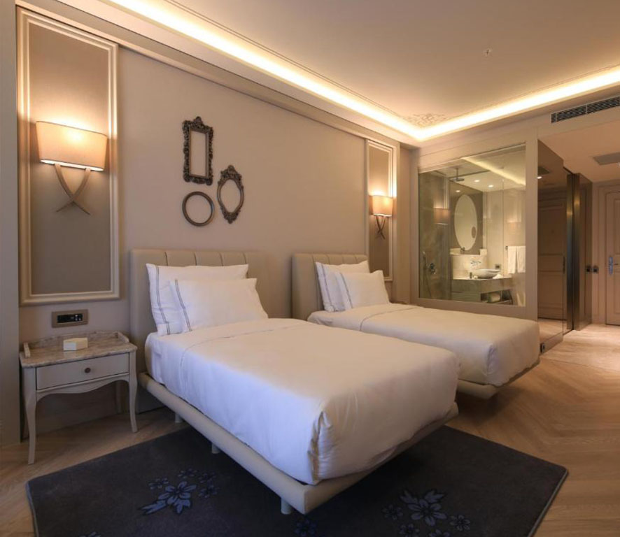 اقامت در Lazzoni Hotel  تجربه‌ای از ظرافت، راحتی و طراحی منحصربه‌فرد است که با دقت در هر جزئیات، فضایی آرامش‌بخش و لوکس را برای مهمانان خود فراهم می‌کند. از اتاق‌های دنج با چشم‌انداز درخشان تا سوئیت‌های مجهز به امکانات ویژه، هر فضا با طراحی مدرن و امکاناتی بی‌نقص، لحظاتی فراموش‌نشدنی را برای اقامت شما رقم می‌زند. Supreme Twin Beds Room  با مساحت ۳۵ مترمربع، گزینه‌ای عالی برای اقامت‌های راحت و مدرن است. این اتاق که با جدیدترین مجموعه مبلمان Lazzoni Furniture  تزئین شده، با دو تخت تویین، دکوراسیونی شیک و مینیمال، و امکاناتی مانند تلویزیون بین‌المللی، صندوق امانات، مجموعه مراقبت شخصی، چای و قهوه‌ی روزانه و روتختی‌های لطیف، حس خانه‌ای لوکس را برای شما ایجاد می‌کند. این اتاق گزینه‌ای ایده‌آل برای دوستان و همکارانی است که به دنبال فضایی مشترک اما مجزا هستند. برای خانواده‌هایی که به فضایی وسیع و خصوصی نیاز دارند، اما اگر به دنبال لوکس‌ترین گزینه هستید، Golden Horn Signature Suite with Terrace  با ۸۵ مترمربع مساحت، اقامتی بی‌نظیر را برای شما به ارمغان می‌آورد. این سوئیت با تراس اختصاصی و چشم‌اندازی خیره‌کننده از شاخ طلایی، فضایی منحصربه‌فرد برای استراحت و آرامش ایجاد می‌کند. طراحی داخلی مدرن با نشیمن مجلل، تخت فرانسوی با بالش‌های پر غاز، حمام‌های سنگ‌مرمر با دوش بارانی و عطر خوش Acqua Di Parma، امکاناتی همچون Apple TV، Marshall Bluetooth Sound System  و Nespresso coffee machine، این سوئیت را به انتخابی ایده‌آل برای مهمانانی که به دنبال اوج ظرافت و آسایش هستند تبدیل کرده است. Family Connection Suite  با مساحت ۱۱۰ مترمربع یک انتخاب عالی است. طراحی گرم و مدرن این سوئیت با مبلمان Lazzoni Furniture، فضای نشیمن بزرگ، تخت فرانسوی با بالش‌های پر غاز، جکوزی اختصاصی و حمام‌های سنگ‌مرمر با عطر Acqua Di Parma  تجربه‌ای منحصربه‌فرد از آسایش و رفاه را فراهم می‌کند. امکاناتی نظیر Nespresso coffee machine، Marshall Bluetooth Sound System  و تلویزیون با کانال‌های بین‌المللی، این سوئیت را به گزینه‌ای عالی برای خانواده‌ها و گروه‌های کوچک تبدیل کرده است که به دنبال اقامتی مجلل با راحتی کامل هستند.