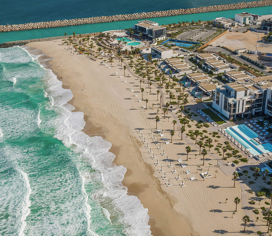 هتل Nikki Beach Resort & Spa Dubai در یکی از جذابترین و پرانرژیترین نقاط دبی، قلب جمیرا و در نزدیکی Dubai Canal واقع شده است. این موقعیت بینظیر، ترکیبی از آرامش ساحلی و دسترسی آسان به مراکز تفریحی و تجاری شهر را فراهم میکند. از هتل، فاصله کمی تا برخی از برترین مقاصد گردشگری و خرید دبی وجود دارد. مرکز خرید Al Ghazal تنها 1.9 کیلومتر و برج خلیفه و Dubai Mall، قلب تپنده خرید و تفریح دبی، در فاصله 7 کیلومتری قرار دارند. علاوه بر این، Dubai World Trade Centre و Dubai Financial Centre در 4 کیلومتری هتل واقع شدهاند، که آن را به انتخابی عالی برای مسافران کاری و تفریحی تبدیل میکند. فاصله هتل تا فرودگاه بینالمللی دبی تنها 10 کیلومتر است و این نزدیکی به فرودگاه، سفر شما را بسیار راحتتر میکند. موقعیت عالی هتل Nikki Beach Resort & Spa Dubai امکان تجربه بینظیری از دبی را برای مهمانان فراهم میکند، از استراحت در ساحل خصوصی گرفته تا بازدید از برترین جاذبههای شهری.