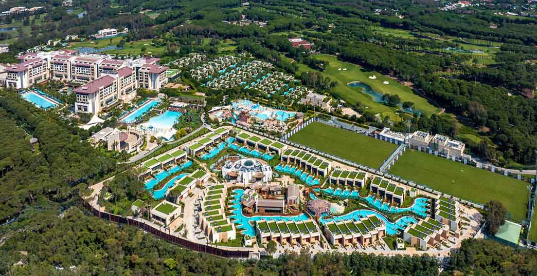 در حال قدم زدن در یک ساحل شنی درخشان هستید و اطراف ساحل را جنگلی به وسعت 100 هکتار از درختان کاج پوشانده است. بله! شما در هتل Regnum Carya هستید. این مجموعه یک هتل لوکس پنج ستاره، تراز اول و All-inclusive در ترکیه است که اقامتی جذاب در حاشیه دریای مدیترانه را به مسافران خود ارائه می کند. محیط این هتل با طراحی رنگ بسیار جذاب طراحی شده است. رنگ سبز آرامش بخش و رنگ های گرمی که به مسافران حس در خانه بودن می دهد، در کنار آبی زیبای استخرهای متعدد این هتل شما را به دنیایی زیبا با امکانات فوق العاده خواهد برد. لابی شیک این هتل مزین به سنگ های مرمر و پذیرایی ورودی است و از ابتدای ورود، زیبایی های این هتل را به نمایش می گذارد، جایی که همه مهمانان تا در اتاق همراهی خواهند شد. هتل Regnum Carya سالیانه نظر توریست های بسیاری را به خود جلب می کند و در آن می توانید از طریق زبان های انگلیسی، ترکی، روسی، و آلمانی با کارکنان این هتل ارتباط برقرار کنید. این هتل در تمامی ماه های سال مشغول به کار است.