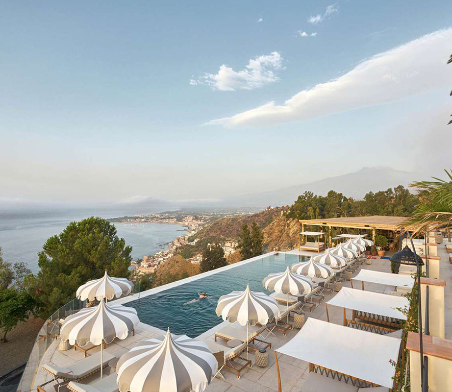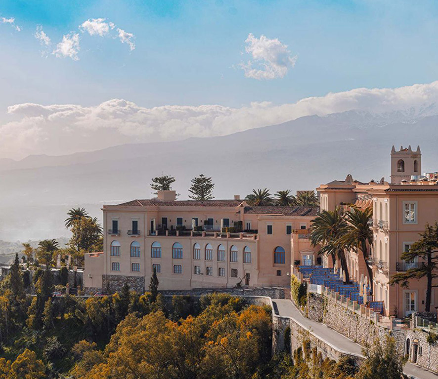 San Domenico Palace, Taormina, A Four Seasons Hotel  در یکی از جذاب‌ترین و تاریخی‌ترین نقاط سیسیل قرار دارد. این هتل در Taormina، شهری زیبا و کوهستانی با چشم‌اندازهای شگفت‌انگیز به دریای ایونی و کوه‌های اتنا، واقع شده است. موقعیت مکانی هتل، ترکیبی از آرامش طبیعت و دسترسی آسان به جاذبه‌های فرهنگی و تاریخی این منطقه است. از Piazza IX Aprile، میدان اصلی Taormina، تنها چند دقیقه پیاده‌روی فاصله دارد. این منطقه پر از فروشگاه‌های لوکس، فروشگاه‌های بوتیک و کافه‌های دنج است که شما را به تجربه خرید و گشت‌وگذار در خیابان‌های سنگ‌فرش دعوت می‌کند. همچنین Teatro Antico di Taormina، یکی از مهم‌ترین  landmarkهای تاریخی شهر، تنها چند دقیقه پیاده‌روی از هتل فاصله دارد. این تئاتر رومی با بیش از دوهزار سال قدمت، این فرصت را به شما می‌دهد که در حالی که از منظره‌های شگفت‌انگیز لذت می‌برید، اجراهای تئاتر و اپرا را تماشا کنید. برای علاقه‌مندان به طبیعت و ماجراجویی، Mount Etna، بزرگ‌ترین آتشفشان فعال در اروپا، تنها حدود 30 دقیقه با هتل فاصله دارد. نزدیک‌ترین فرودگاه به هتل، Catania-Fontanarossa Airport  (فرودگاه کاتانیا-فونتانا روسا) است که تقریباً 55 کیلومتر از هتل فاصله دارد. هتل خدمات ترانسفر خصوصی به فرودگاه را ارائه می‌دهد و دسترسی آسان به فرودگاه را فراهم می‌کند.