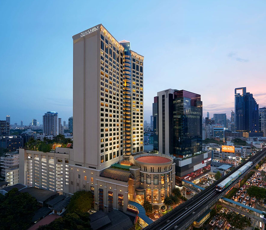 هتل Sheraton Grande Sukhumvit با دسترسی مستقیم به ایستگاه BTS SkyTrain Asok و نزدیکی به ایستگاه مترو MRT Sukhumvit، امکان جابهجایی سریع و راحت به تمام نقاط شهر را برای مهمانان فراهم کرده است. در اطراف هتل، مجموعهای از جاذبههای گردشگری و مراکز خرید انتظار شما را میکشند. مرکز خرید محبوب Terminal 21 تنها چند قدم با هتل فاصله دارد و تجربهای منحصربهفرد از خرید با طراحیهایی الهامگرفته از شهرهای بزرگ دنیا ارائه میدهد. همچنین، مراکز خرید لوکسی همچون Emporium و Emsphere، با فاصله کمتر از 2 کیلومتر، برای علاقهمندان به برندهای بینالمللی و محصولات لوکس، گزینهای ایدهآل محسوب میشوند. برای علاقهمندان به فرهنگ و هنر، مکانهایی همچون Grand Palace و Wat Arun با دسترسی راحت از طریق حملونقل عمومی، تجربهای جذاب و بهیادماندنی از تاریخ و معماری شگفتانگیز تایلند را ارائه میدهند. همچنین، بازار شبانه Asiatique The Riverfront که با نورپردازیهای خیرهکننده و فضای دلنشینش شناخته میشود، با فاصلهای در حدود 6 کیلومتر از هتل، مکانی ایدهآل برای گذراندن شبهای هیجانانگیز است. هتل در فاصلهای مناسب از فرودگاه بینالمللی Suvarnabhumi قرار دارد. این فاصله تقریباً 25 کیلومتر است و با تاکسی یا شاتلهای فرودگاهی، میتوانید در حدود 40 تا 50 دقیقه به هتل برسید.