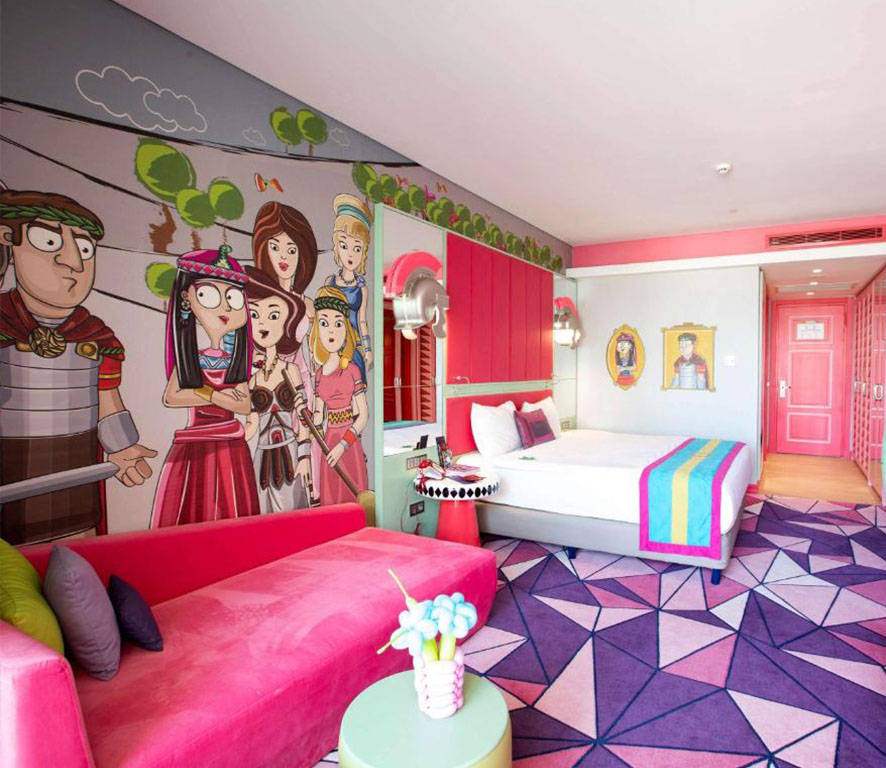 وقتی در مورد اتاق های هتل The Land of Legends صحبت می کنیم باید بدانیم که این اتاق‌ها با طراحی کارتونی و فانتزی، مخصوصاً برای کودکان و خانواده‌ها، طراحی شده‌اند. کاراکترهای محبوب شما و فرزندانتان در طول این سفر همراه شما خواهند بود. بیایید در مورد اتاق ها بیشتر صحبت کنیم. Deluxe Room های  مجهز به تلویزیون صفحه‌تخت، مینی‌بار، حمام لوکس و طراحی رنگارنگ مخصوص کودکان، Junior Suite ها با فضای بزرگ‌تر، سالن نشیمن مجزا، دستگاه قهوه‌ساز و منظره‌ای زیبا از مجموعه، Family Suite ها  با دو اتاق‌خواب مجزا، امکانات بازی برای کودکان، و سرویس ویژه برای خانواده‌ها و Grand Suite  ، لوکس‌ترین اتاق این هتل که دارای سالن بزرگ، جکوزی، و خدمات VIP از گزینه های شما برای اقامت در این مجموعه می باشند.