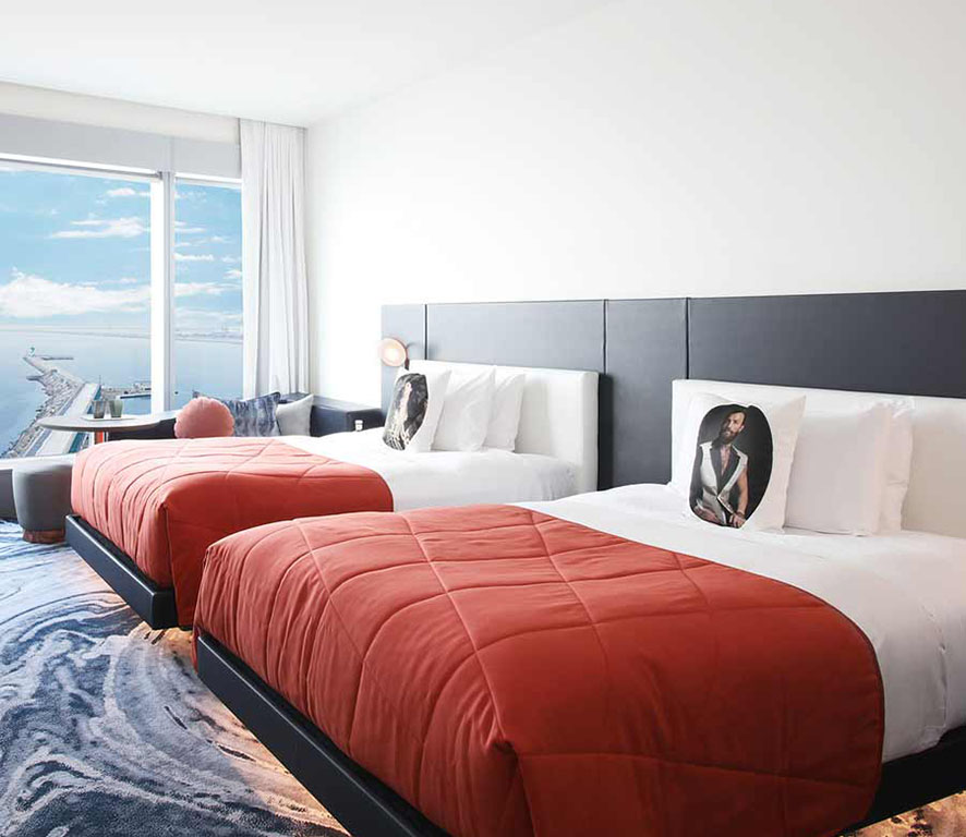 اقامت در W Barcelona تجربه‌ای است که فراتر از یک شب ماندن در هتل خواهد بود. اتاق‌ها و سوئیت‌های این هتل با پنجره‌های سرتاسری که تا سقف امتداد دارند، چشم‌انداز خیره‌کننده‌ای از دریای مدیترانه و شهر بارسلونا را به نمایش می‌گذارند. طراحی داخلی، با الهام از معماری معاصر، حس مدرنیته و راحتی را به‌طور هم‌زمان القا می‌کند. اما اگر به دنبال نهایت تجمل هستید، Extreme WOW Suite گزینه‌ای بی‌نظیر خواهد بود. این سوئیت با مساحت گسترده خود و ترکیب رنگ‌های عمیق آبی، برنز و طلایی، حال و هوای شب‌های پرشور بارسلونا را منعکس می‌کند. فضای آن ترکیبی از تفریح و آرامش است؛ از یک بار با طراحی الهام‌گرفته از گائودی و میز فوتبال‌دستی گرفته تا تلویزیون‌های خمیده 65 اینچی که تجربه‌ای کم‌نظیر از سرگرمی را ارائه می‌دهند. اما نقطه اوج این اقامت، تراس اختصاصی با جکوزی و تخت‌های آفتاب‌گیری است که فضایی ایده‌آل برای استراحت و لذت بردن از منظره شهر و دریا فراهم می‌کند. این سوئیت برای مسافرانی مناسب است که به دنبال تجربه‌ای منحصربه‌فرد، همراه با امکانات لوکس و فضایی متفاوت هستند؛ از مهمانانی که عاشق طراحی‌های مدرن و مجلل‌اند تا کسانی که می‌خواهند اقامتشان در بارسلونا چیزی فراتر از یک سفر معمولی باشد.